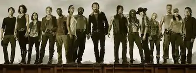 The fifth season of The Walking Dead, an American post-apocalyptic horror television series on AMC, premiered on October 12, 2014, and concluded on March 29, 2015, consisting of 16 episodes.[1] Developed for television by Frank Darabont, the series is based on the eponymous series of comic books by Robert Kirkman, Tony Moore, and Charlie Adlard. The executive producers were Kirkman, David Alpert, Scott M. Gimple, Greg Nicotero, Tom Luse, and Gale Anne Hurd, with Gimple as showrunner for the second consecutive season. The fifth season received widespread critical acclaim. It was nominated for multiple awards and won three, including Best Syndicated/Cable Television Series for the third consecutive year, at the 41st Saturn Awards.[2]