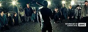 The seventh season of The Walking Dead, an American post-apocalyptic horror television series on AMC, premiered on October 23, 2016, and concluded on April 2, 2017, consisting of 16 episodes.[1][2] Developed for television by Frank Darabont, the series is based on the eponymous series of comic books by Robert Kirkman, Tony Moore, and Charlie Adlard. The executive producers are Kirkman, David Alpert, Scott M. Gimple, Greg Nicotero, Tom Luse, and Gale Anne Hurd, with Gimple as showrunner for the fourth consecutive season. The seventh season received mixed reviews from critics. It was nominated for multiple awards and won three, including Best Horror Television Series for the second consecutive year, at the 43rd Saturn Awards.[3]