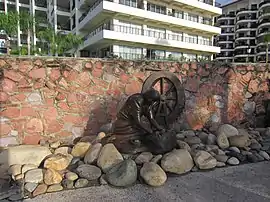 The statue depicts a woman washing clothes on a rock, next to a water mill.[2] The subject of laundresses, also known as washerwomen, used to be a popular one in art.[3] Malorie Mackey of Viva Glam Magazine said the sculpture demonstrates how Demetro "showcases the dying traditions of Puerto Vallarta".[4]