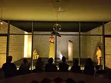 The Watermill Center is "a laboratory for performance" founded by Robert Wilson in 1992 on the site of a former Western Union research facility.[1] The Watermill Center is located in Water Mill, New York, and was officially opened to the public in 2006.[2] Its programming currently consists of year-round artist residencies and exhibitions, a public summer lecture series, and a collaborative summer program for young and emerging artists from a variety of disciplines.[3] As a unique center for all the arts working in collaboration, The Watermill Center has been called "the academy of the 21st-Century" by anthropologist Edmund Carpenter, and described by the New York Times as a contemporary " Bayreuth minus the nationalism and the exclusive dedication to the founder's work,"[4] In the manner of The Pina Bausch Foundation in Wuppertal, Germany, The Watermill Center is both a study center for research on Wilson's theater and a workspace for creative development.[5] Wilson himself has described Watermill as "a think tank, a contemplative arcade where all kinds of different things can happen."[6]