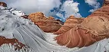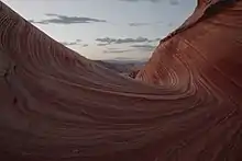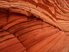 The Wave is a sandstone rock formation located in Arizona, United States, near its northern border with Utah. The formation is situated on the slopes of the Coyote Buttes in the Paria Canyon-Vermilion Cliffs Wilderness of the Colorado Plateau. The area is administered by the Bureau of Land Management (BLM) at the Grand Staircase-Escalante National Monument visitor center in Kanab, Utah.[1]