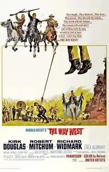 The Way West is a 1967 American Western film directed by Andrew V. McLaglen and starring Kirk Douglas, Robert Mitchum, and Richard Widmark. The supporting cast features Lola Albright, Jack Elam, Sally Field and Stubby Kaye. Ostensibly based on the Pulitzer Prize winning novel of the same name by A. B. Guthrie, Jr., the film is a drama about a band of settlers traveling by covered wagon train to Oregon in 1843. It includes on-location cinematography by William H. Clothier. Sam Elliott made his feature film debut as an uncredited Missouri townsman.
