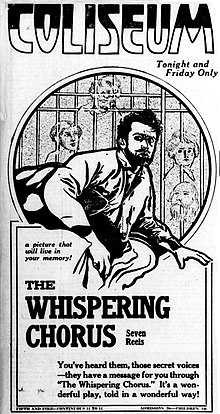The Whispering Chorus is a 1918 American silent psychological drama film directed by Cecil B. DeMille.[1] It is the first and earliest film was considered a psychological drama.[2]