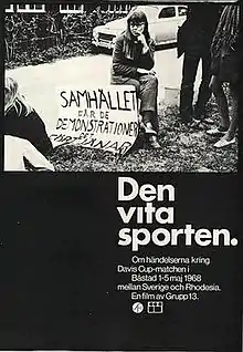 The White Game (Swedish: Den vita sporten) is a 1968 Swedish documentary film about the protests against the 1968 Davis Cup tennis match between Sweden and Rhodesia, in Båstad, Sweden.