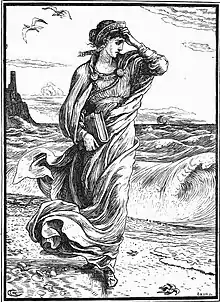 Further along the walk, by the seashore, the Wise Princess saw a child drowning. She jumped in the water and saved the child, but the waves were too high to save herself. Death came to see her and said “I will teach you all you want to know”.[1]