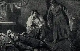 A distant sound catches their attention. Soon the postman and his coachman enter the hut, and it turns out, they've lost their way. The postman is young and good-looking, and Raisa asks if the two would have some tea, then tells the guest that her late father was the sexton here, then before his death he hastily married her off to somebody from the Consistory, and now the two live here in sheer poverty, because Saveliy is lazy and is 'afraid of people'.