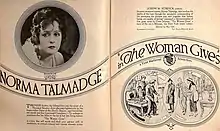 The Woman Gives is a 1920 American silent adventure drama film directed by Roy William Neill and starring Norma Talmadge, John Halliday, and Edmund Lowe.[1][2]