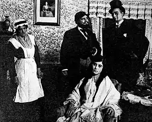 The cast included Janet Salisbury[4] (Laura Fairlie and The Woman in White), Charles Perley (Walter),[5] Charles Craig (Percival), Alec Frank (Fosco), Viola Alberti (Countess Fosco) and Lyman Rabbe (Pesca).[2]: 208 The story was adapted by George Edwardes Hall.[6]