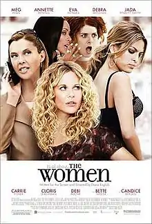 The Women is a 2008 American comedy-drama film written, produced and directed by Diane English and starring Meg Ryan, Annette Bening, Eva Mendes, Debra Messing, Jada Pinkett Smith, Carrie Fisher, Cloris Leachman, Debi Mazar, Bette Midler, and Candice Bergen. The screenplay is an updated version of the George Cukor-directed 1939 film of the same name based on a 1936 play by Clare Boothe Luce.