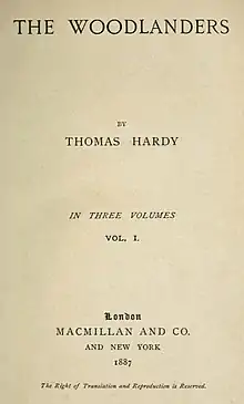 The Woodlanders is a novel by Thomas Hardy. It was serialised from May 1886 to April 1887 in Macmillan's Magazine[1] and published in three volumes in 1887.[2] It is one of his series of Wessex novels.