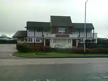 All twelve pubs in the film use identical signage on menus and walls, reflecting what Wright called "that fake hand-written chalk" common to modern British pubs.[8] The exteriors of the real pubs were shot at locations in Welwyn Garden City and Letchworth Garden City, with altered signage.[13] Letchworth Garden City railway station received a makeover to become the "Hole in the Wall".[14] Stunts were coordinated by Brad Allen, of martial arts film director Jackie Chan's team. Wright said: "In Drunken Master, Jackie Chan has to get drunk to fight, but this is more the idea of Dutch courage. You know, when you're kind of drunk and you think 'ah, I can climb up that scaffolding!' Or just that you're impervious to pain. One of the things we talked about is this idea that [the characters] become better fighters the more oiled they get."[8]