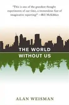 The World Without Us is a 2007 non-fiction book about what would happen to the natural and built environment if humans suddenly disappeared, written by American journalist Alan Weisman and published by St. Martin's Thomas Dunne Books.[1] It is a book-length expansion of Weisman's own February 2005 Discover article "Earth Without People".[2] Written largely as a thought experiment, it outlines, for example, how cities and houses would deteriorate, how long man-made artifacts would last, and how remaining lifeforms would evolve. Weisman concludes that residential neighborhoods would become forests within 500 years, and that radioactive waste, bronze statues, plastics, and Mount Rushmore would be among the longest-lasting evidence of human presence on Earth.