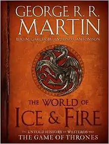 The World of Ice & Fire is a companion book for George R. R. Martin's A Song of Ice and Fire fantasy series. Written by Martin, Elio M. García Jr. and Linda Antonsson, it was published by Bantam on October 28, 2014.[1][2][3] The 326-page volume is a fully illustrated "history compendium" of Martin's fictional world, written from the perspective of an in-world "Maester" and featuring newly written material, family trees, and extensive maps and artwork.[4][5]