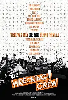 The Wrecking Crew is a 2008 American documentary film directed by Denny Tedesco, son of guitarist Tommy Tedesco.[2] It covers the story of the Los Angeles–based group of session musicians known as the Wrecking Crew, famed for having played on numerous hit recordings throughout the 1960s and early 1970s. The film premiered at the 2008 South by Southwest Film Festival.
