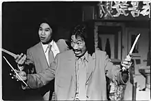 ![]() Frank Chin playing the character of Fred Eng in a 1978 production of The Year of the Dragon. | |