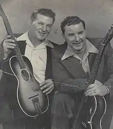 George (February 10, 1910 - July 1974) and Leslie York [1] (August 23, 1917 - February 21, 1984), known professionally as The York Brothers, were an American country music duo, popular from the late 1930s through the 1950s, known for their close harmony singing. Their country boogie style, a precursor to rockabilly, combined elements of hillbilly, jazz, and blues music.[2] Although originally from Kentucky, they are often associated with the city of Detroit, where they were based for several years, and which they paid tribute to in songs such as "Hamtramck Mama", "Detroit Hula Girl", and "Motor City Boogie".