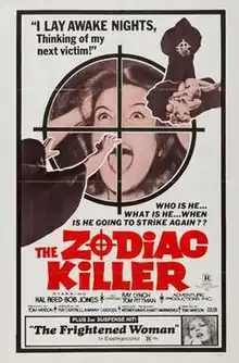 The Zodiac Killer is a 1971 film directed by Tom Hanson and starring Hal Reed, Bob Jones, Ray Lynch and Tom Pittman. The plot is based on the murders committed by the Zodiac Killer in the San Francisco area, though it takes many liberties with the actual investigation with the film providing a name and back story for the killer.