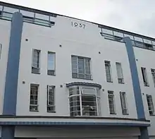 Besides the Oddfellows' Hall, among the smaller halls used for staged performances at this time was the Cercle St Thomas in New Street, Saint Helier. Originally built in 1819 as the Albion Baptist Chapel, it was acquired in 1842 for use by the French-speaking Roman Catholic congregation as a chapel dedicated to Saint Thomas, in which function it continued until the construction of the large Saint Thomas's Church nearby in 1887 left the chapel redundant. It found new use as a Catholic clubroom with billiard tables and a stage for performances. The Cercle St Thomas building was modernised in 1908 and equipped for showing films. The Jersey Entertainment Society commissioned CW Blanshard Bolton, architect, in 1935 to enlarge the building to house a new theatre. The striking new Art Deco frontage of the New Playhouse was revealed in 1938, and from then until the outbreak of the Second World War a repertory theatre was operated, mostly by actors and crew from England, including Laurence Naismith and Donald Pleasence.[10] In 1946 the Denville Players, a repertory company from England led by Len Laurie and Marjorie Denville, took a lease of the Playhouse from the Brotherhood of Saint Thomas. Laurie and Denville had honeymooned in Jersey in 1925, had liked the Island so much that they returned to perform summer season in the 1930s and only escaped from being stranded during the Occupation by the fact they had refused the offer of the 1939 season. They returned to make their home in Jersey in 1946. They operated the Playhouse theatre until 1963 when the Brotherhood sold the building and it was converted to a retail store.[11]
