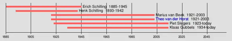 Theodoor (Theo) van der Horst (Arnhem, Netherlands, 18 July 1921 - Arnhem, 9 October 2003), was a Dutch painter, sculptor, graphic artist and glass artist.[1][4] Van der Horst painted people, animals and landscapes in an expressionist style. Besides oil paintings he made etchings, drawings, gouaches, sculptures and stained glass. He exhibited until the seventies in galleries and museums, but then chose to live as a hermit. He died in October 2003 at the age of 82 in Arnhem.
