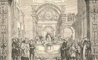 In Aeterni Patris, Leo recommended Thomas Aquinas as a model for theological and philosophical studies.[2] Thomism had lost its old role as leading theology and Leo attempted to re-establish it "for the protection of faith, welfare of society and the advancement of science".[3] He envisaged not sterile interpretations of it, but a going back to the original sources. This new orientation at the beginning of his pontificate was welcomed by Dominicans, Thomist Jesuits like Giuseppe Pecci and numerous bishops throughout the world. There was also strong opposition which developed on several fronts within the Church, some considering Thomism simply outdated. Others, on the other hand, used it for petty condemnations of dissident views they did not like.[4] The Jesuits and the Dominicans, traditional antagonists, both claimed leadership in the renewal of Catholic theology.[4]