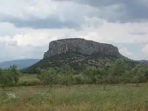 Theopetra Cave is located in Thessaly, Greece, on the north-east side of a limestone rock formation, 3 km (2 mi) south of Kalambaka.[1] The site has become increasingly important as human presence is attributed to all periods of the Middle and Upper Paleolithic, the Mesolithic, Neolithic and beyond, bridging the Pleistocene with the Holocene.[2]