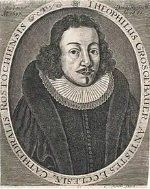 Theophil Großgebauer (24 November 1627, Ilmenau – 8 July 1661, Rostock) was a German Lutheran theologian active at the University of Rostock, most notable for his work Wächterstimme aus dem verwüsteten Zion.