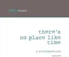 There's No Place Like Time: A Retrospective masquerades as a catalogue for a real retrospective of experimental films by a non-existent videographer. Author Lance Olsen and his wife, videographer Andi Olsen, stage the fake retrospective in galleries in Europe and the U.S. The result is a three-dimensional text: a real place dedicated to an unreal career of an artist named Alana Olsen. From her videos and the texts surrounding them (including this catalogue/novel), the viewer/reader is invited to treat her like a fictional character, inferring her character, development, obsessions, and relationship with her daughter, Aila, who allegedly curates the exhibit, but is in fact another fictive character. The catalogue/novel is made up of critical and biographical essays, stills, and reminiscences about Alana's small body of work (fewer than 20 videos over five decades, some of which have gone missing) produced in relative anonymity, yet apparently a large influence on artists as varied as Lars von Trier, Douglas Gordon, and Martin Arnold.