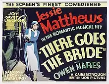 There Goes the Bride is a 1932 British comedy film directed by Albert de Courville and starring Jessie Matthews, Owen Nares, Carol Goodner, Basil Radford and Roland Culver.[1] The screenplay concerns a woman who breaks off her an engagement and escapes to Paris.[2] It is a remake of the German film Mary's Start in die Ehe, also known as Ich bleib' bei dir (1931).[3] David Niven makes his film debut in a tiny uncredited role.[4]
