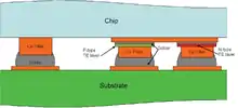Recent trends in high-density interconnects have led to the use of copper pillar solder bumps (CPB) for CPU and GPU packaging.[2] CPBs are an attractive replacement for traditional solder bumps because they provide a fixed stand-off independent of pitch. This is extremely important as most of the high-end products are underfilled and a smaller standoff may create difficulties in getting the underfill adhesive to flow under the die.