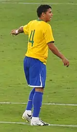 Silva was included in the 2008 Brasileirão Team of the Season and was selected as the Fans' Player of the Season.[32] Silva was widely regarded as one of Fluminense's most important performers in the 2008 Copa Libertadores,[31][33][34] reaching the finals only to lose on penalties to LDU Quito. Silva's form for Fluminense earned him a call-up to the Seleção to take part in the 2008 Summer Olympics.[35] Silva was linked with many clubs in 2008, including the likes of Inter Milan, Chelsea and Villarreal, though ultimately he opted to join the Brazilian contingent already at AC Milan.[36] The transfer was confirmed on 12 December.[37] In his final match for Fluminense, Silva was cheered by 50,000 supporters who were witnessing his last performance at the Maracanã.[38]