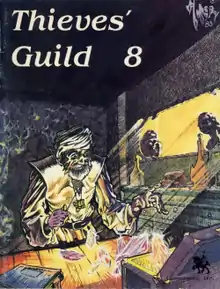 Gamelords first published Thieves' Guild in 1980. Over the next four years, they released nine more supplements, including Thieves' Guild 8 in 1983, a 32-page softcover book written by Kerry Lloyd, Alfred Hipkins, and Janet Trautvetter, with artwork by Becky Harding, Denis Loubet, Wallace Miller, Larry Shade, Hannah M. G. Shapero, John Statema, and Janet Trautvetter.[2]