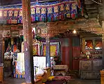 The top floor of the monastery houses the Lamokhang temple, which is a repository of numerous volumes of scriptures including Kangyur and Stangyur. Only men are allowed to enter this floor.[4] There are big stupas and mani walls at the entry to the monastery.[10] A small room above the temple is exclusively used as a school room to teach local boys of the villages and some of these boys are chosen as Lamas. The top floor is also the official residence of the incarnate lama of the monastery. A large pillar engraved with the Buddha's teachings is also located here. The monastery complex has a number of white washed huts, which house the Lamas.[21]
