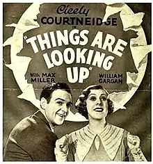 Things Are Looking Up is a 1935 British musical comedy film directed by Albert de Courville, produced by Michael Balcon for Gaumont British and starring Cicely Courtneidge, Max Miller and William Gargan.[2][3] It was made at Islington Studios by British Gaumont, an affiliate of Gainsborough Pictures.[4] The film's sets were designed by Alex Vetchinsky. Courtneidge plays a dual role as the sisters Bertha and Cicely Fytte. Bertha is a dour schoolteacher, while the bubbly Cicely runs a nearby circus When Bertha surprisingly elopes, Cicely takes her place at the school to prevent her from getting the sack. It was the film debut for Vivien Leigh.[5]