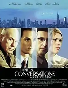 Thirteen Conversations About One Thing is a 2001 American drama film directed by Jill Sprecher. The screenplay by Sprecher and her sister Karen focuses on five seemingly disparate individuals in search of happiness whose paths intersect in ways that unexpectedly affect their lives.