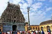 Thirukkadaiyur (Thirukadavur) is a village on the east coast of Tamil Nadu, about 300 km south of Chennai and 15 km north of Karaikal. The history of the village is centered around Amritaghateswarar - Abirami Temple of Tirukkadaiyur is associated with the legends of Markandeya and Abirami Pattar, which is a replica. The original temple, Thirumeignanam Gnanaparameswarar Temple,[1] called Thirumeignanam, built in the 11th century, was ravaged by the sea and is in ruins now. People worship and pray at Thirukkadaiyur temple for long life.