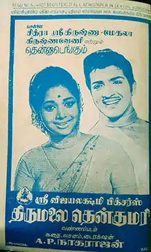 Thirumalai Thenkumari was among the earliest road films in Tamil cinema,[3] and took inspiration from the 1969 film If It's Tuesday, This Must Be Belgium. Unlike the original, it was given a "religious twist", with its premise focusing on a group of passengers who embark on a pilgrimage across South India, visiting places like Tirupati and Madurai. The film was actually shot in the places depicted onscreen, as opposed to using sets.[4] Since it was previously believed in the Tamil film industry that writer-director A. P. Nagarajan's films were successful only because of their star cast and "mammoth" scales, rather than his directorial skills, he made this film, which featured mostly newcomers, to silence his critics.[5] Cinematography was handled by W. R. Subba Rao,[4] the art direction by Ganga, and the editing by T. Vijayarangam.[1] The film, which was produced by C. Paramasivan under the banner Sree Vijayalakshmi Pictures, was completed within a month.[6]