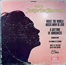 This Is Jackie DeShannon is an LP album by Jackie DeShannon, released by Imperial Records under catalog number LP-9286 as a monophonic recording in 1965, and later in stereo under catalog number LP-12286 the same year. The cover was credited to Woody Woodward and the photography to Ivan Nagy.