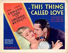 This Thing Called Love is a 1929 American romantic comedy film directed by Paul L. Stein and starring Edmund Lowe, Constance Bennett, Ruth Taylor, Roscoe Karns, ZaSu Pitts, and Jean Harlow. Harlow appears in a cameo role, as she was not yet famous. The film is based on the play This Thing Called Love, a Comedy in Three Acts, by Edwin J. Burke.[1]