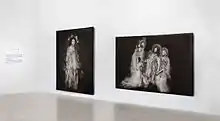 In January 2012 filmmaker David Lynch exhibited his photos during the inauguration of his new Paris nightclub, Silencio.[2] For Le Figaro, "his portraits of women taken at fashion shows and art openings, which are then digitally reworked, have a timeless grace that denounces with elegance the ephemeral character of beauty. ... Madonnas damned for all eternity."[2]