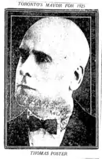 Thomas Foster (July 24, 1852 – December 10, 1945) was the Mayor of Toronto, Ontario, Canada from 1925 to 1927.