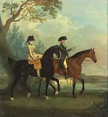 More famous for his work depicting animals, Gooch did also paint images of those that owned the horses and dogs he more readily depicted.[5] He famously carried out a study of the life of a racehorse as a set of six images, depicting the animal's misuse after a life of racing as a thoroughbred. The Life and Death of a Racehorse, completed in 1792 was a popular work and reproduced as aquatint prints and often accompanied with a thought-provoking text on animal cruelty.[6]