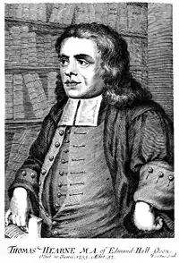 ![]() Portrait of Hearne, taken from “The Life Of Anthony à Wood” by Anthony Wood (1772) | |