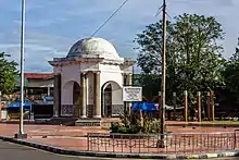 The Thomas Parr Monument is octagonal in shape, covering a total area of 70 square metres (750 sq ft). Three arched openings provide entrance, and six Tuscan or Roman Doric columns surround the monument. The 13.5-metre (44 ft) monument is topped with a dome.[4][3] Owing to this dome, the mausoleum is also known locally as "Kuburan Bulek" ('Round Grave').[3]