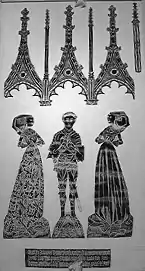 - Christopher Peyton (died 1499), whose monumental brass survives in Isleham Church. He was Sheriff of Cambridgeshire and Huntingdonshire in 1496. He married a daughter of Leonard Hide of Hide Hall in Hertfordshire, but died without children.[7] An inscription on the wall-plate of the roof of Isleham Church states: "Pray for the good prosperite of Crystofor Peyton and Elizabeth his wife and for the soul of Thomas Peyton squire and Margaret his wife fader and moder of the said Crystofor Peyton and for the souls of all the Awncestre of the said Crystofor Peyton Qwych dyd mak this rofe in the year of our lord MCCCCLXXXXV being the tenth year of King Henry the Seventh". (1495)[8]