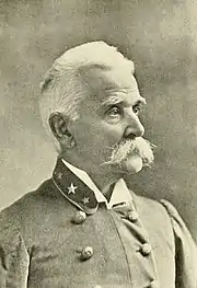 Munford was appointed to duty as a brigadier commander by Fitzhugh Lee on November 9, 1864, but, despite being described as a general in several sources, he was never officially commissioned and confirmed as a brigadier general.[1] He took command of Fitzhugh Lee's cavalry division late in the war with that general's promotion to cavalry corps commander.[2][4] and fought at Five Forks, High Bridge, and Sailor's Creek.[3] He led men away from the Army of Northern Virginia prior to General Robert E. Lee's surrender at Appomattox Court House and escaped with a goal of reaching North Carolina to link up with the army of General Joseph E. Johnston during the Carolinas Campaign.[5] However, hearing that Johnston had since surrendered, Munford dispersed his force after reaching Lynchburg, Virginia.[2][5]
