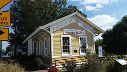 The Thomasville Railroad Passenger Depot is a historic train station located at Thomasville, Davidson County, North Carolina. It is one of the oldest remaining frame depots in the state, built between 1870 and 1871. The board-and-batten building features Victorian sawnwork detailing. Until 1912, it served as a passenger train station with the Richmond and Danville Railroad and later the Southern Railway. Due to the increase in passenger rail travel, a new brick depot was built. This depot was then moved to the north side of the tracks and served as a freight agent's office. The Southern Railway eventually gave the structure to the town. The Thomasville Historical Society raised $5,000 for its restoration in 1969.[2] Another restoration was completed in the late 1990s. In July 2000, the Thomasville Railroad Passenger Depot became the home of the Thomasville Visitors' Center.[3][4]
