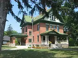 Thompson-Ray House is a historic home located at Gas City, Grant County, Indiana. It was built between 1902 and 1906, and is a 2+1⁄2-story, Late Victorian Free Classic style brick and stone dwelling. It has a cruciform plan and gable roof. It features porches with multiple classical columns and a porte cochere.[2]: 5