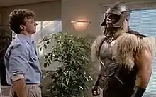 - Thor appeared in the live action television film The Incredible Hulk Returns.[2] Thor was played by Eric Allan Kramer, and Donald Blake by Steve Levitt. In this version Blake does not transform into Thor, but rather they were two separate individuals. Donald Blake was a former student of David Banner, and tracked down Banner to ask for his help. Blake was a mountaineer as well as a doctor and was climbing a mountain in Norway when he felt the need to get to the top of the mountain, and there he found a cave in which he found the hammer Mjölnir. When he shouted "Odin!" Blake summoned the Viking warrior Thor, who was a spirit that cannot be admitted into Asgard until he has proved himself worthy. At first Banner was skeptical of Blake's story, but when Blake summoned Thor, his story was verified. Thor accidentally caused Banner to turn into the Hulk and the two fought to a standstill, but later Thor and the Hulk worked together to defeat a common enemy. Before the events of the movie Blake was always being overruled by Thor; but with the help of his former mentor (Banner), he was able to establish a more equal footing with Thor. In this movie Thor is portrayed as a fun-loving warrior who is very happy drinking beer, fighting with men, and carousing with women.[3]