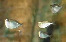 Thoracocharax stellatus, the silver hatchetfish, spotfin silver hatchetfish, spotted hatchetfish or platinum hatchetfish, is a widespread hatchetfish found throughout South America including Venezuela, Colombia, Ecuador, Brazil, Peru, Bolivia, Paraguay, and Argentina[1] in the Amazon, Orinoco, Paraguay and Tocantins-Araguaia basins.[2] This species is one of the largest of the hatchetfishes. It is usually found in areas with abundant riparian vegetation.[1]