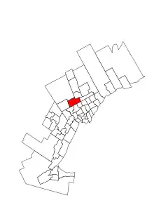 The riding is named after Thornhill, a community first settled along Yonge Street in the mid-1790s, around the time of the street's opening.[3] The community of Concord occupies the northern and western parts of the riding.[4]